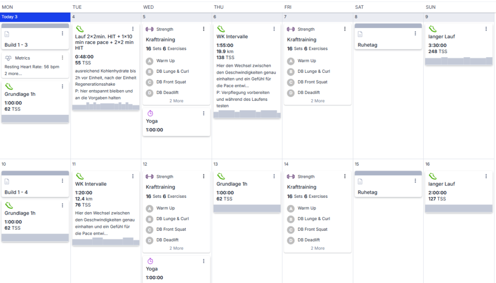 • Erstellung eines strukturierten Plans über gesamten Trainingszeitraum in Trainingpeaks